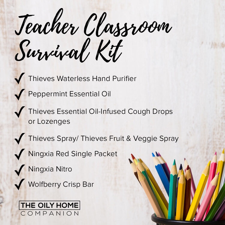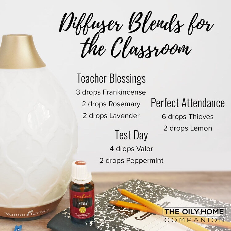 These are also a wonderful addition to your teacher’s back to school welcome gift if you send your child into school with one! Write out the blends on a nice index card or design it with handlettering if you’re gifted there, and package it with some Thieves Sanitizer and Cough Drops!
