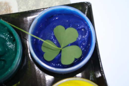 - Cover a leaf in paint and then turn it around and press it down on the paper.