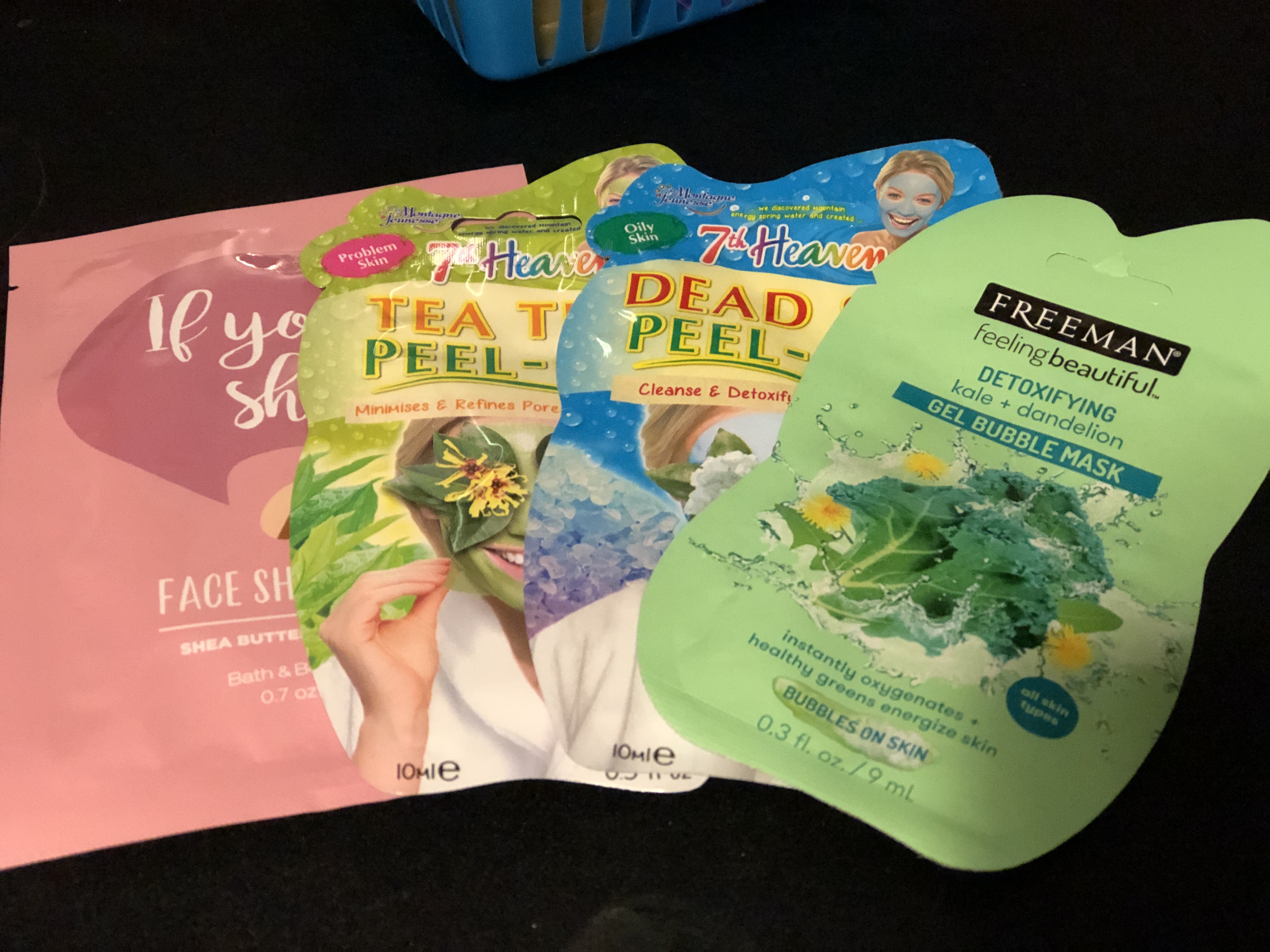 We purchased all items at the Dollar Store other than 3 face masks that we purchased from Wal-Mart. All items were $1.00 each. You can find the face masks in the beauty section at most Wal-Marts in a nice set up at the end of the aisle.