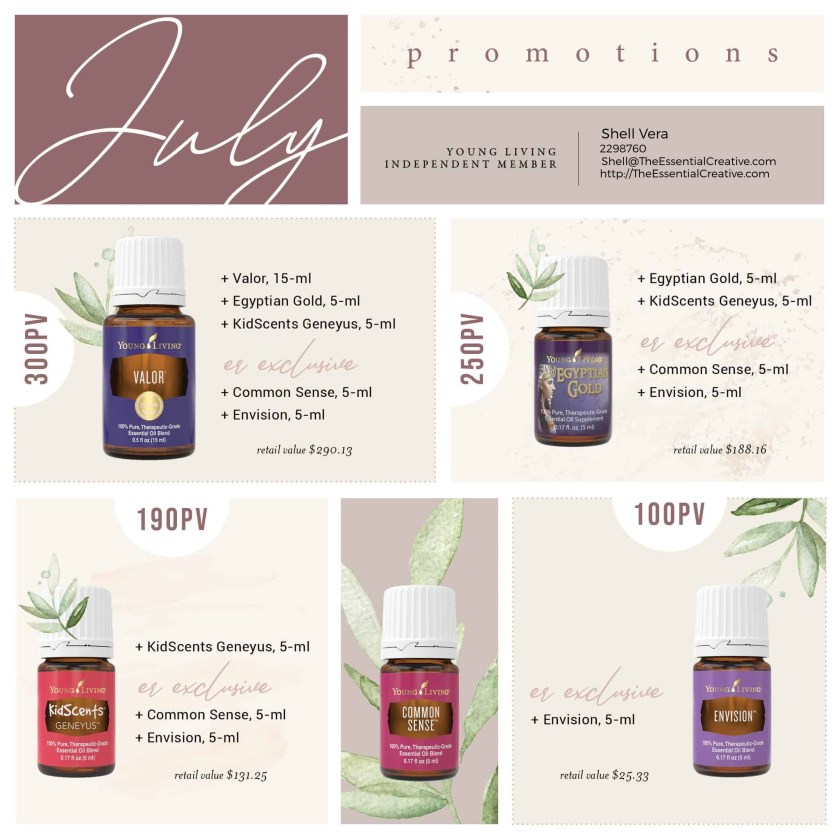 Back-to-school season will be here before you know it! Start prepping your home in advance with essentials from July’s PV promo. Whether you’re the parent, student, or teacher, these essential oil blends will help you get ready for the busy months ahead. Begin your day with boldness by applying a combination of Valor® and V-6′” Vegetable Oil Complex to your neck. While you prep your morning to-do list, diffuse Envision’” to encourage a can-do attitude. Once the afternoon rolls around, overcome the midday slump with a meditation session boosted by the balancing scent of Egyptian Gold’”. Then create a focused atmosphere and inspire feelings of productivity with the aroma of the perfect study buddy duo-Common Sense’” and KidScents® GeneYus’”.
