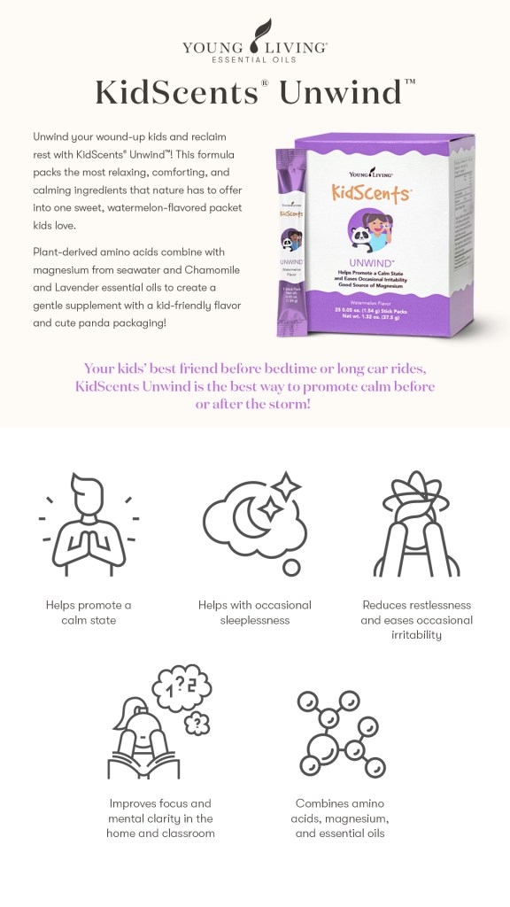- Unwind can be taken in conjunction with other favorites like Kidscents® Mightyvites, Kidscents® Mighty Pro, and Kidscents® Mightyzymes!