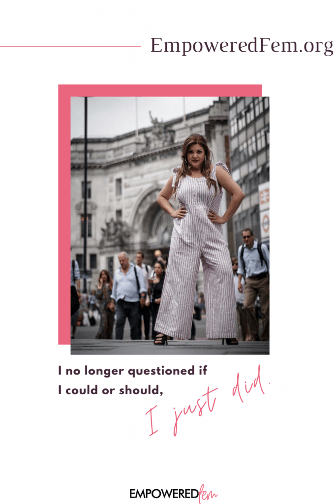 I walk differently, talk differently, sit differently, share differently, and am different from the woman I was when my head was always looking down because I didnβt believe in myself enough to look eye to eye with others. I am no longer afraid to share my opinions and give my input when askedβ¦some would even tell you I do it when not asked. I own who I am because it took me a lot of work to get here. And I want YOU to come along with me. Thatβs why I pour my heart out each month here on the blog. Itβs why I work a full-time job AND run Empowered Fem in my βfreeβ time. Itβs why I surround myself with a group of badass women who empower me as I empower you. And itβs why today we are going to rewrite your future chapters. Starting now.
