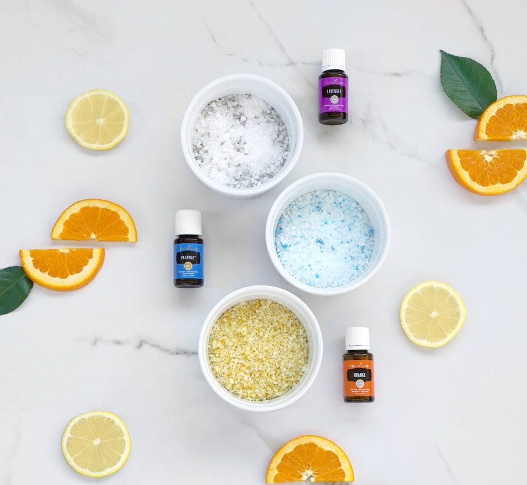 1. Place coarse sea salt, Epsom salt, and baking soda in a bowl.2. Mix 25 drops of essential oil into the bowl with salts.3. Combine all ingredients together in a jar with a tight seal.