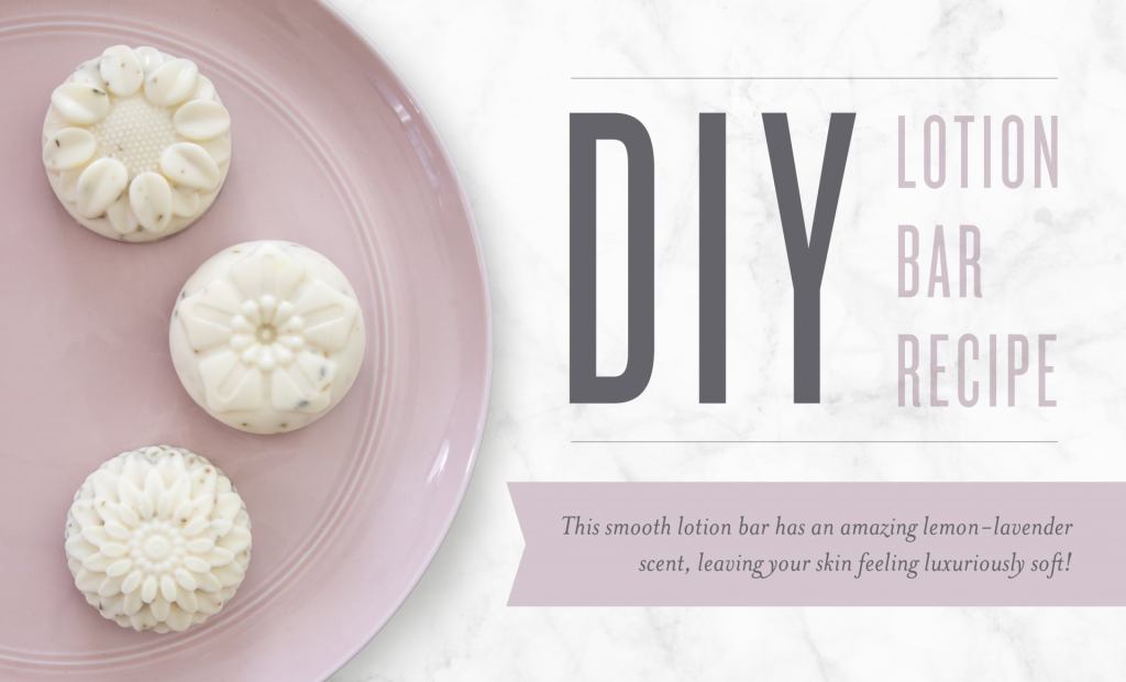 This DIY lotion bar uses the warmth of your body to melt natural emollients and essential oils into the skin to smooth, moisturize and hydrate dry hands, heels, elbows, and more.