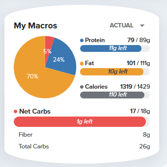 This was soooooooo good and filling. I will caveat, I had not had breakfast today so I had some extra calories and such to get to my macros. Evaluate this against how you are eating. I’ve included the Carb Manager details under the recipe so you have the full details and can see what brands and such that I used.