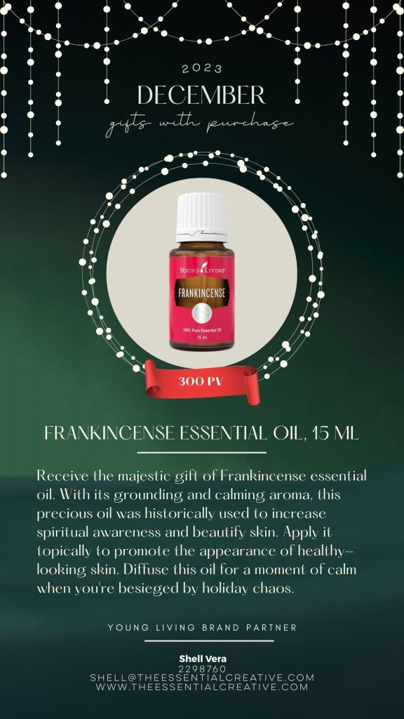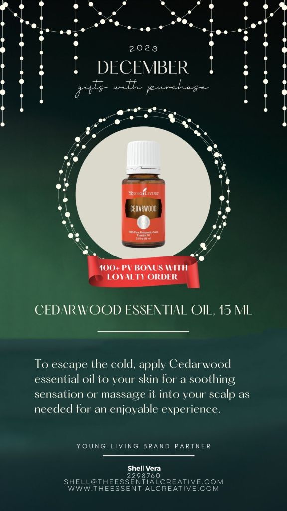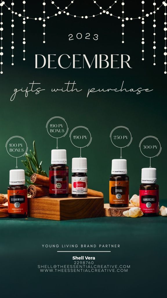 Cozy up to winter wellness by unwrapping this month’s gifts with purchase! As the snow settles and you snuggle by the fireplace, apply Thieves® essential oil blend, with its invigorating and soothing aroma, to the bottoms of your feet. To escape the cold, apply Cedarwood essential oil to your skin for a soothing sensation or massage it into your scalp as needed for an enjoyable experience. Warm up any cup of tea with a few drops of Longevity™ Vitality™ oil blend. Promote the appearance of your youthful, radiant glow with Copaiba essential oil. Receive the majestic gift of Frankincense essential oil, historically used to beautify skin and increase spiritual awareness.